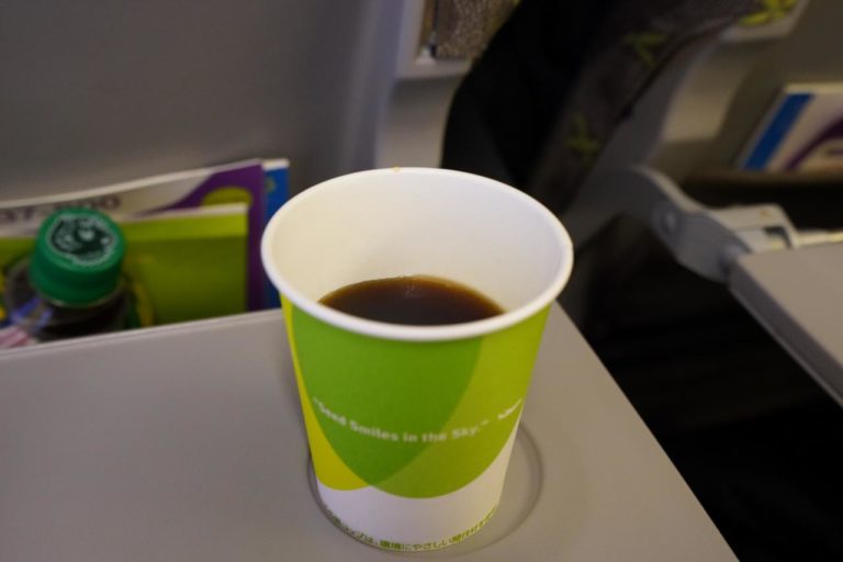 機内ではホットコーヒーを飲んで休憩。ゆったりウトウトしながらのフライトです。