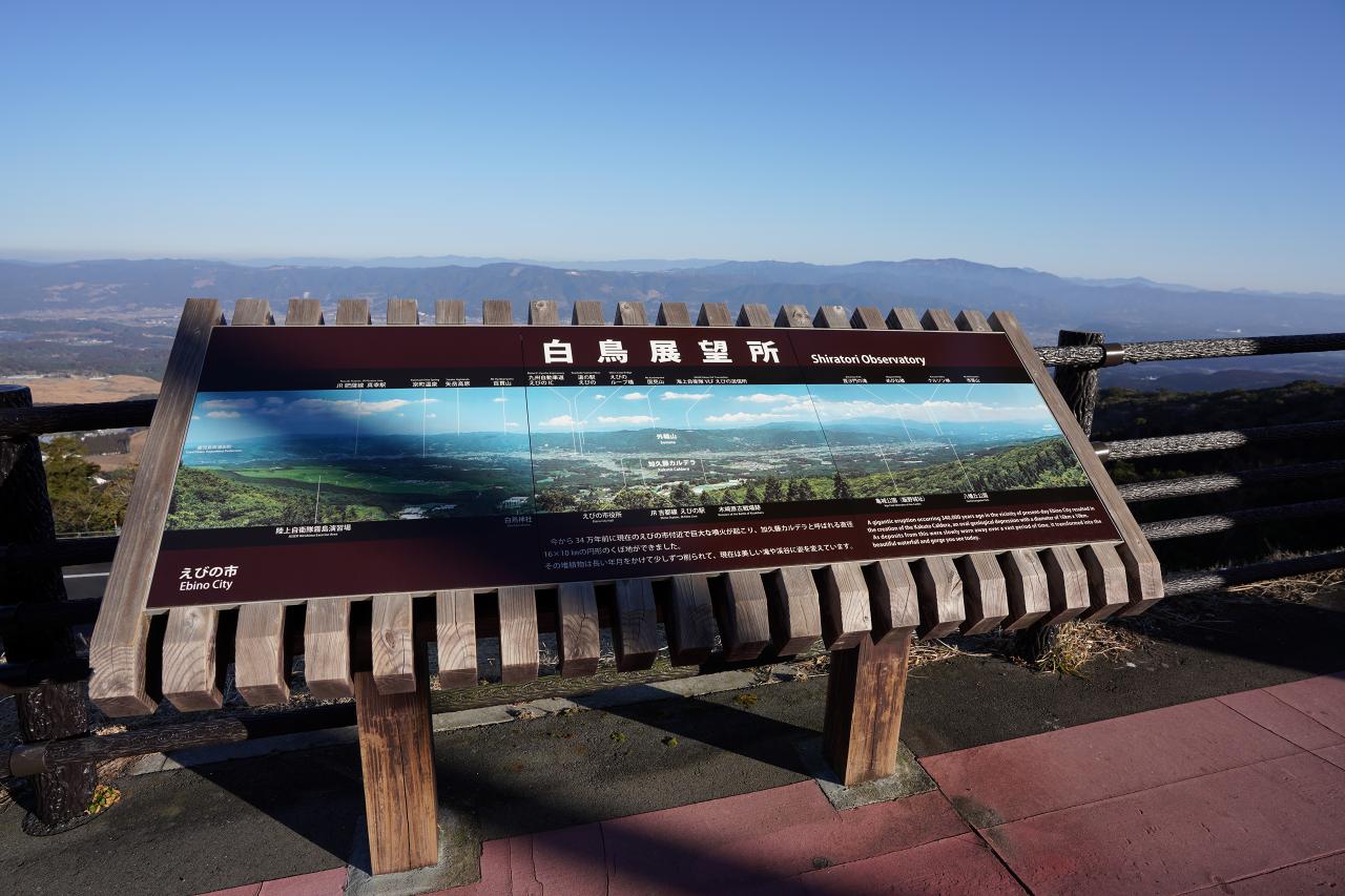 展望台からの眺めはこんな感じ。少しの平地の部分にお家が建ってるのがよくわかります。でもなんか「えびの市」って「えびな市」と間違えそう。