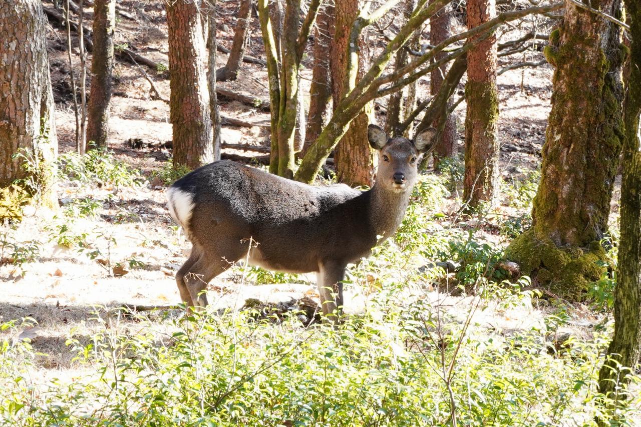 しばらく進むと、先を進んでいた人から「横に鹿居ますよ〜」と言われて見ると居た。北海道で見かけるエゾシカに比べると小柄でかわいい。そう、道路に飛び出してこなければ鹿はかわいい動物なんですよ。