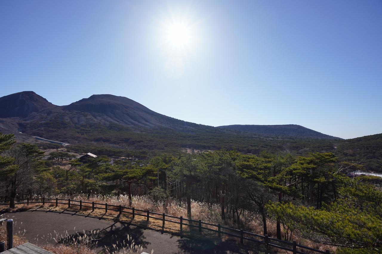 駐車場から歩いて数分の「えびの高原展望台」へ