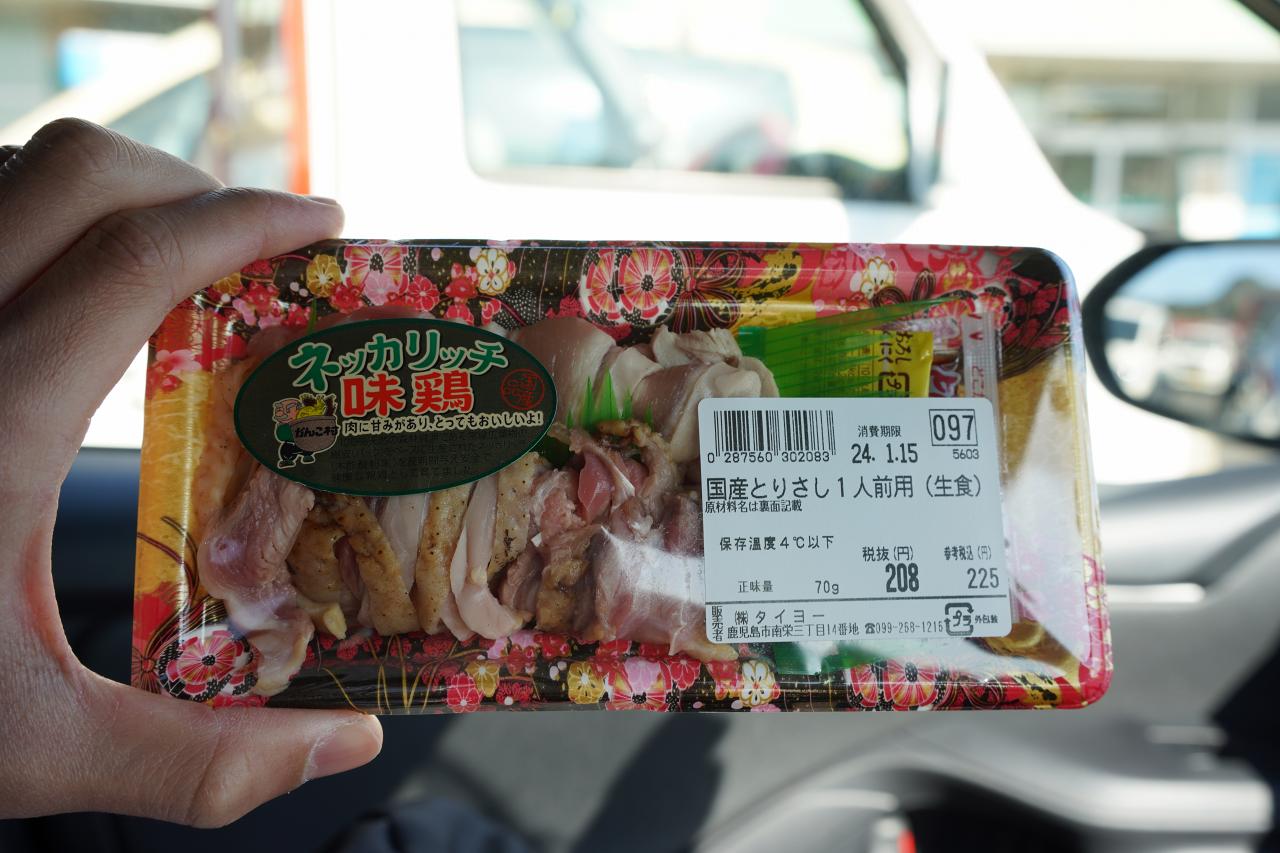 購入したのは鶏のたたき。鹿児島や宮崎では一般的に流通しており、独自の衛生基準を定めています。南九州に来ると食べたくなるんだけど、お肉の味をしっかり堪能できて美味しい。