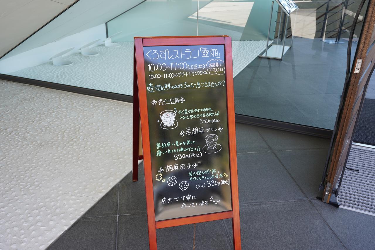 売店とレストランに分かれている建物の売店側では、黒酢ドリンクやソフトクリームが販売中。黒酢ソフトクリームってどんな味がするんだろうと気になったので食べてみることに。
