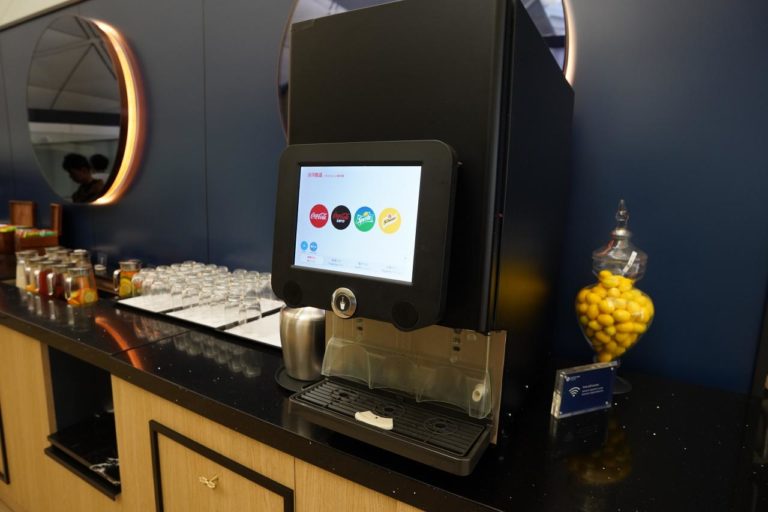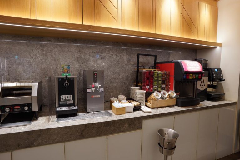 ドリンクコーナー。コーヒーやソフトドリンクの他、台湾ビールも飲むことができます。