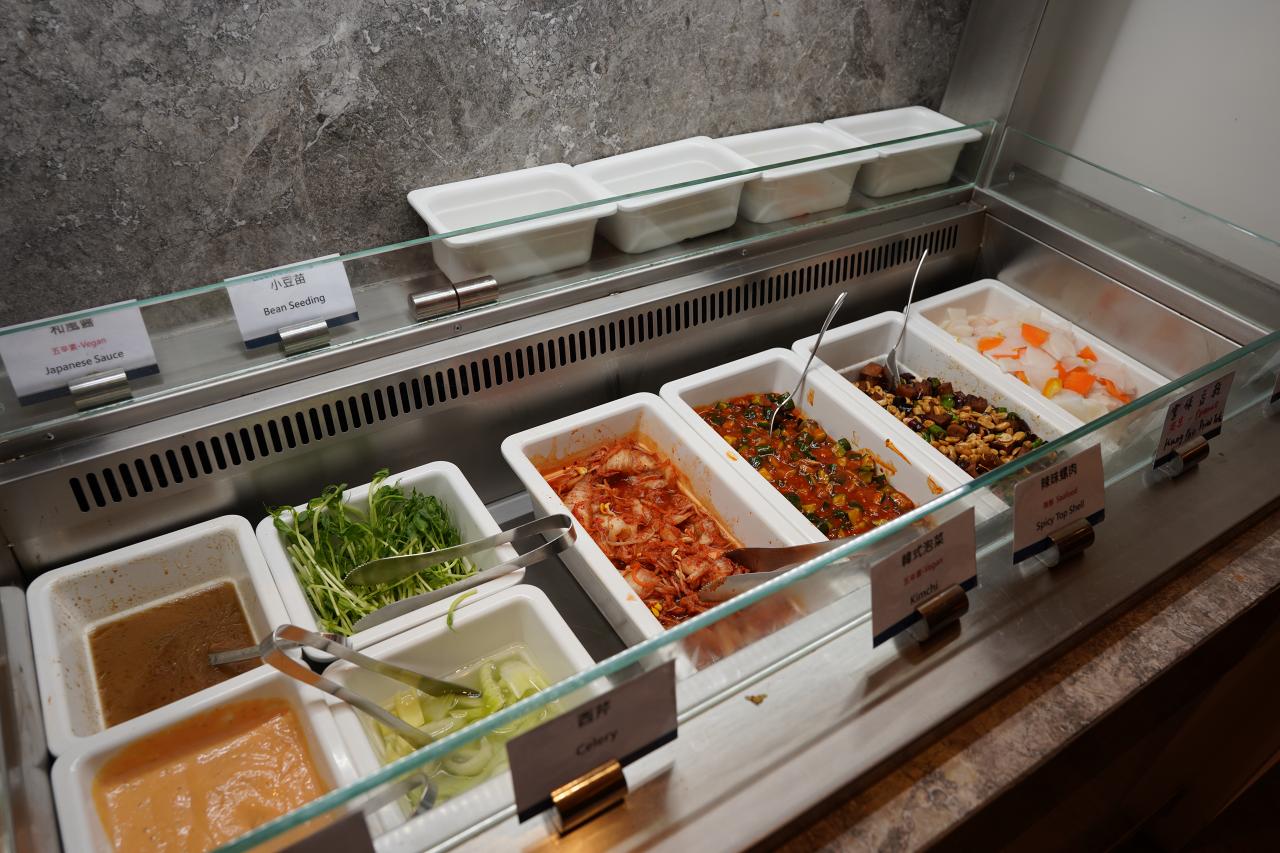 反対側にはレタスや水菜・キムチなどが並ぶお野菜コーナー。メインの料理とは逆にあるので気づきにくいかも。