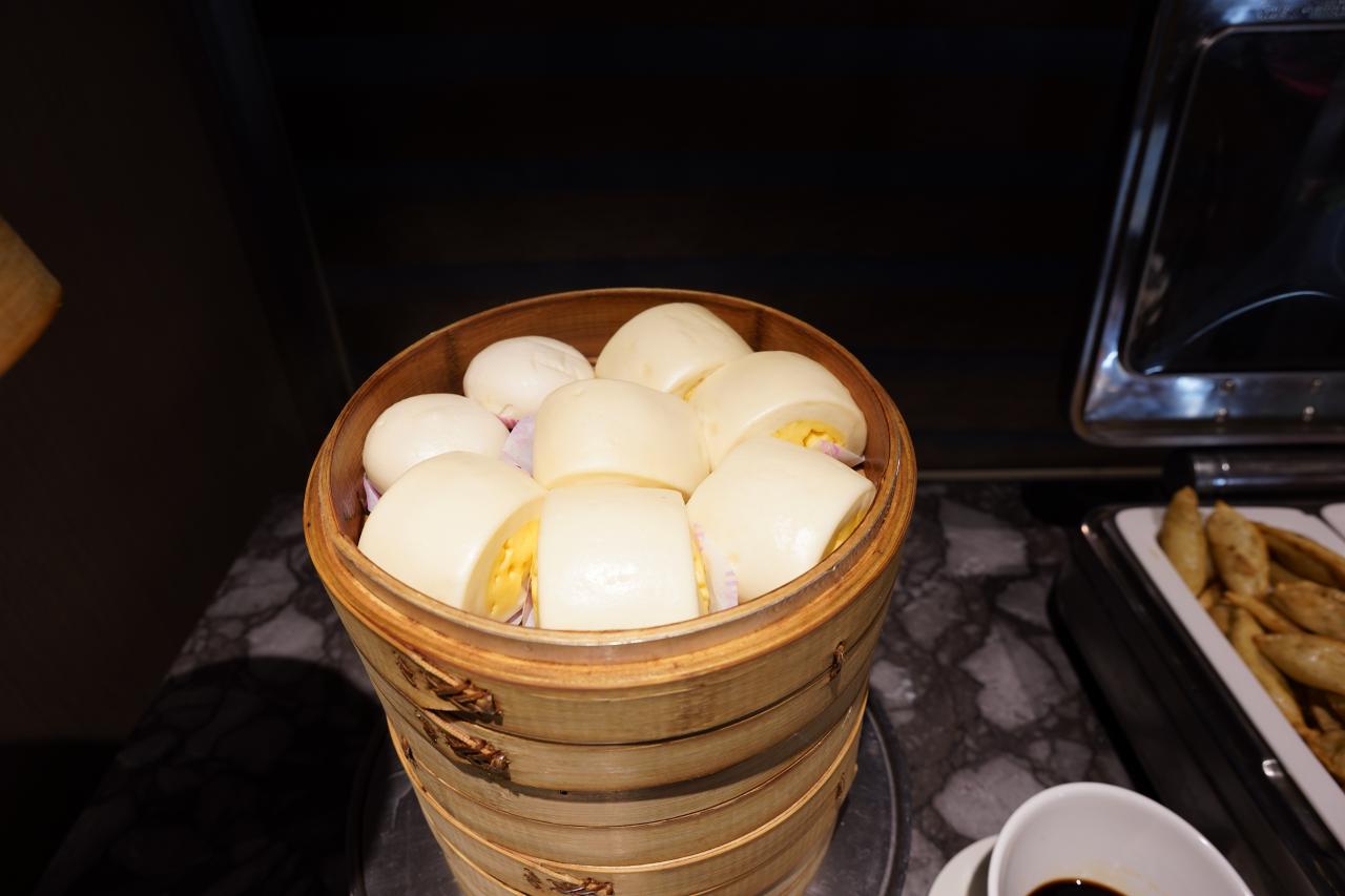 そんなわけで朝食1回目(?)牛肉麺とブロッコリー、ウインナーとゆで卵にあんまんを持ってきました。もう少し食べても良かったけど、もう一つのラウンジに行くのでセーブ。