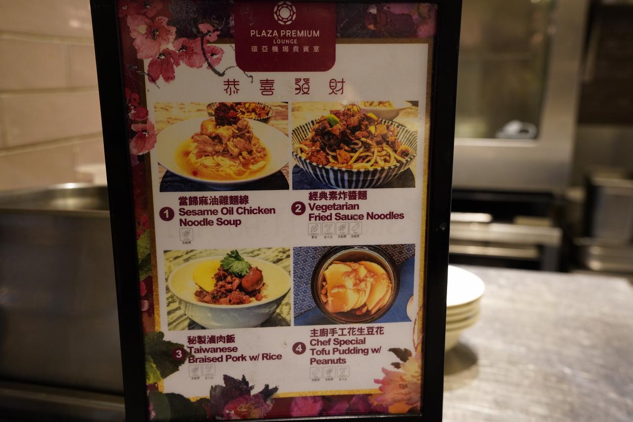 オリエンタルラウンジと同じように、このラウンジでもオーダー式メニューがあります。種類は少なめだけども、台湾らしい料理が並んでいました。