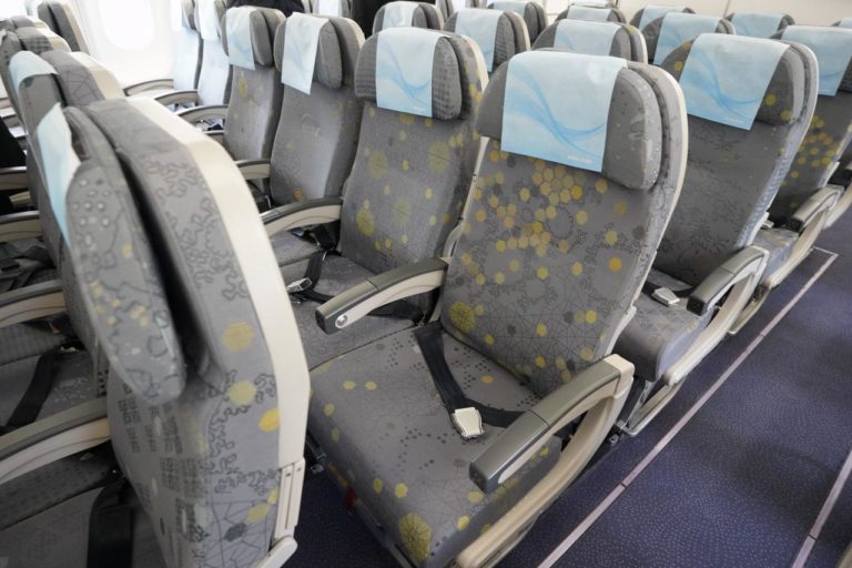 比較的空いていたので座席の撮影もできました。エコノミーだけども枕部分も大きくてゆったり乗ることができる座席です。