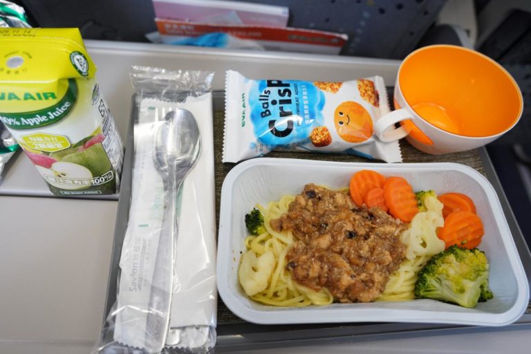 機内食がでてきました。朝食ということもあってラインナップは少なめでしたが、桃園空港であれこれ食べた私にとってはちょうど良いくらいの量でした。