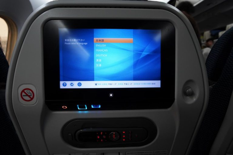 機内モニターにはUSBが付いているので充電可能。Wi-Fiは有料なので利用しませんが、充電だけでもできれば安心して動画を見続けられます。あとは眠いので寝る……。