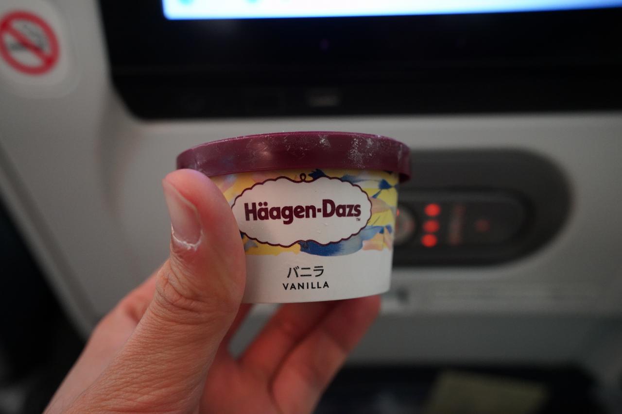 しばらくするとハーゲンダッツもやってきました。ここまで中国国際航空・エバー航空と乗りましたが、機内食のクオリティはANAが一番かもしれない。ドリンクメニューも豊富だしね。