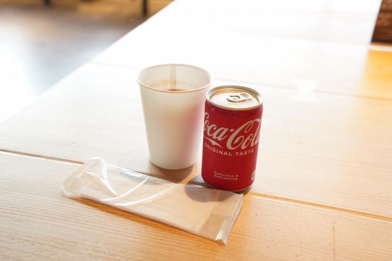 トマトジュースとスタッフに頼んで飲むコカ・コーラ。早朝から起きてねむねむな時に炭酸飲料はガツンと来ます。他にもコーヒーや紅茶の他、黒酢ドリンクや青汁などの健康志向な飲み物があるのがパワーラウンジの特徴。座席も快適なのでゆったり過ごせます。