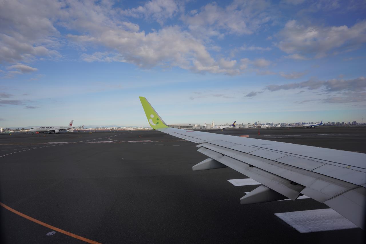 浜松町に着いたらめちゃくちゃ混雑中。そもそも浜松町って乗り換え用のエスカレーターや階段が狭くて困るんだけど、今日は普段にも増して人が多くて渋滞。間に合うか心配だったけども無事に間に合いました。混んでるとはいえ京急のように立ちっぱなしではなく座席の確保が可能。行きは東京モノレール経由のがやっぱり楽に感じます(帰りは京急のがどっちのターミナルでも始発だからいいけど)。
