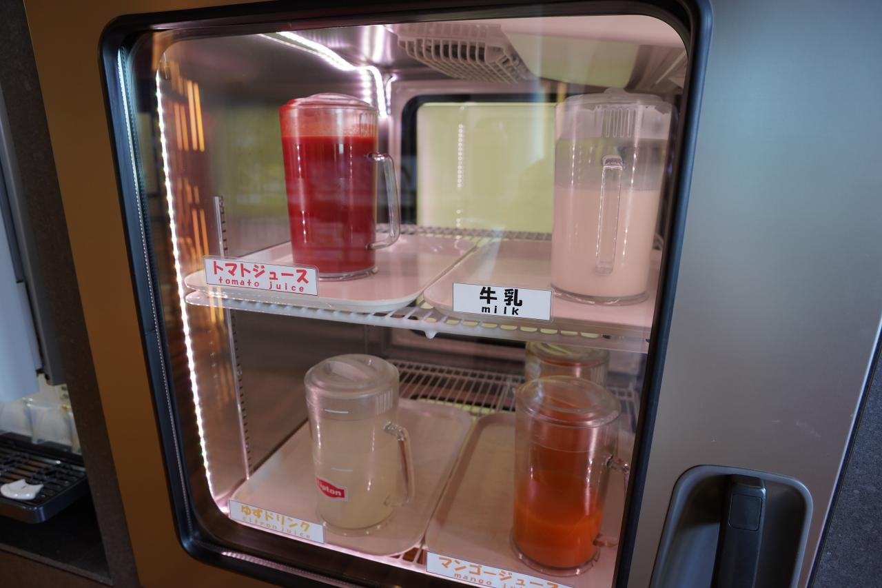 冷蔵庫にはトマトジュースや牛乳の他、ゆずドリンクとマンゴージュースも用意されていました。