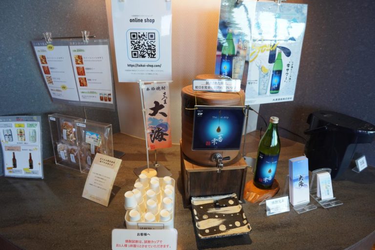またあくまで「試飲」という形ですが、焼酎を飲むことも可能。そして残念ながら以前までもらえていた無料のおつまみは2024年1月に廃止となったようです。