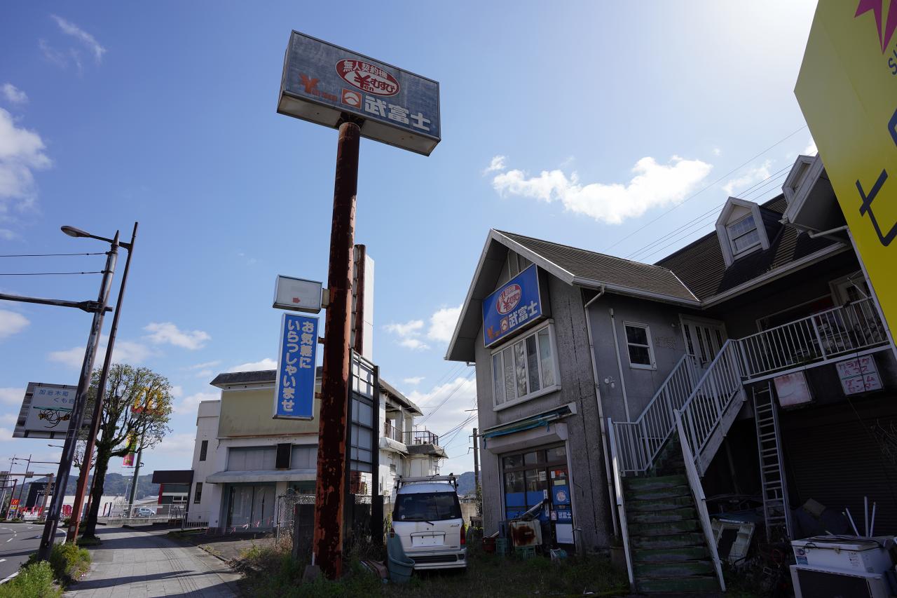 鹿児島市方面へと車を走らせていると、姶良市内で車窓に「武富士」の看板を発見。思わず近くの停められそうな場所に車を停めて見に行っちゃいました。