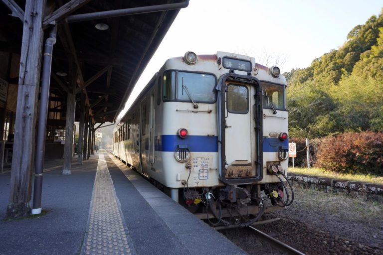 ちょうどホームに停車しているタイミングで撮影できました。やっぱりこういう古い駅舎には古い車両(キハ40)が似合います。BEC819系(DENCHA)なんか来たら雰囲気が全然合わない気がするし。