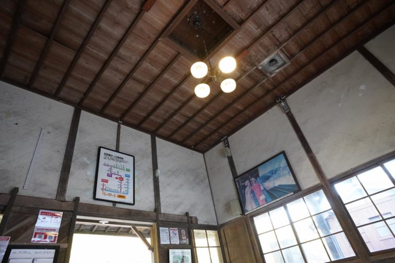 ホームから改札方面を眺めた一枚。もしこの駅のことを知らずに間違えて降りてしまったら、タイムスリップしてしまった!?と勘違いしてしまいそうです。