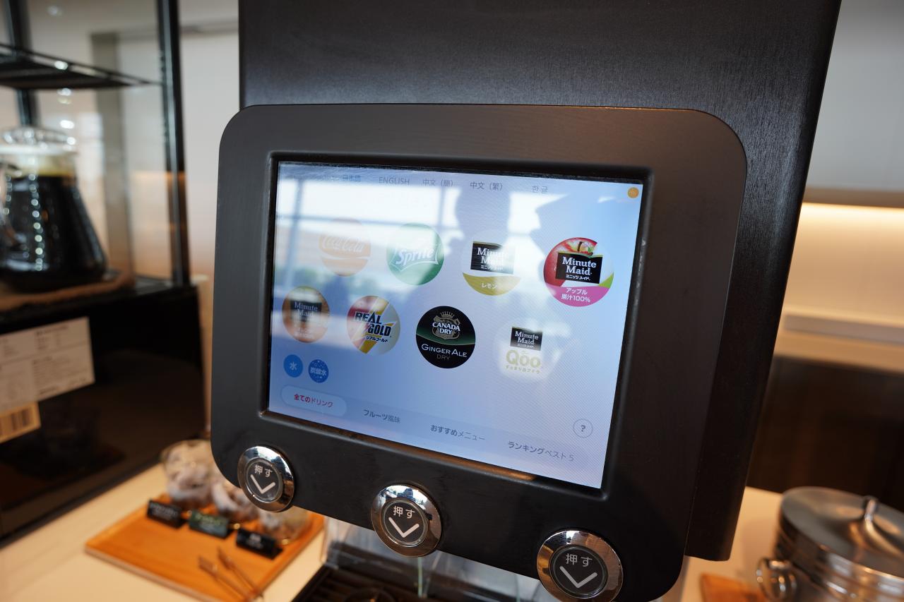 さっそくドリンクを……と思ってみてみると、なんか変わってます。以前は冷蔵庫にアイスコーヒーの他、黒酢ドリンクや青汁が置いてあったのですが無くなっていました。代わりにファミレスにあるようなドリンクバーが設置されており、以前は「コカ・コーラ」「リアルゴールド」しかなかった炭酸飲料のレパートリーが充実することに。