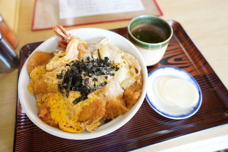 やってきたどんぶりがこちら。ホタテフライとエビフライを卵でとじた丼で、ボリューム満点だし味も美味しい。カツ丼も有名ということなので、また来た時にはカツ丼も食べてみたいな。