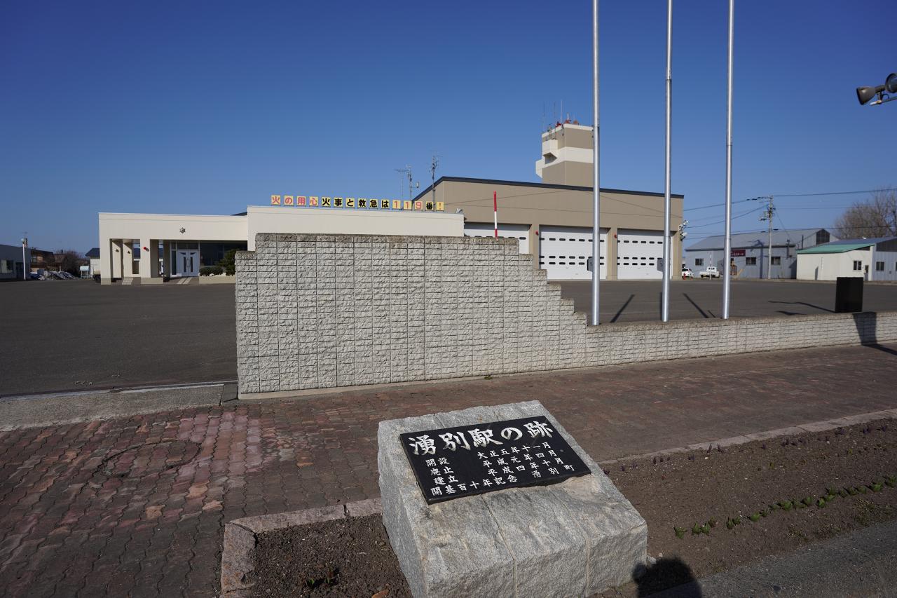 今では消防署となっている跡地。駅の跡を示した石碑が設置されていました。