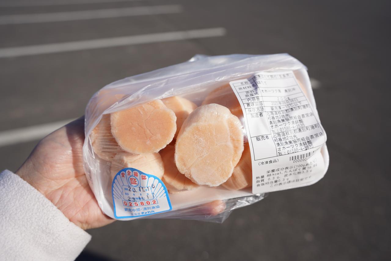 まだ冬期間で漁もあんまり多くないのか、並んでいるのは黒カレイばっかり。何か買おうかなと冷凍コーナーを見ていたら、手軽に食べられそうなホタテが有ったので夜食に購入してみました。この量で540円というのは嬉しい。