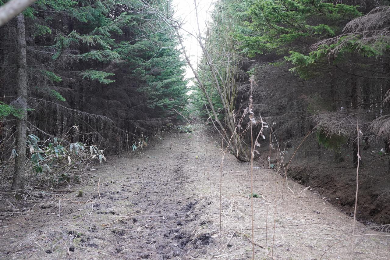 森林と森林の間が線路と駅跡なのですが、土が積み上がっていて何も痕跡は分かりません。
