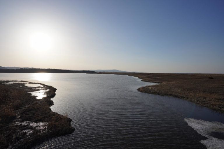 夕暮れのコムケ湖。周囲に人の気配も無いので、静かな空間でのんびり過ごせるのも魅力。
