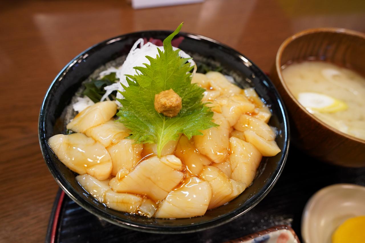 - 「海鮮食堂よってけまるとみ」で漬けホタテ丼を堪能