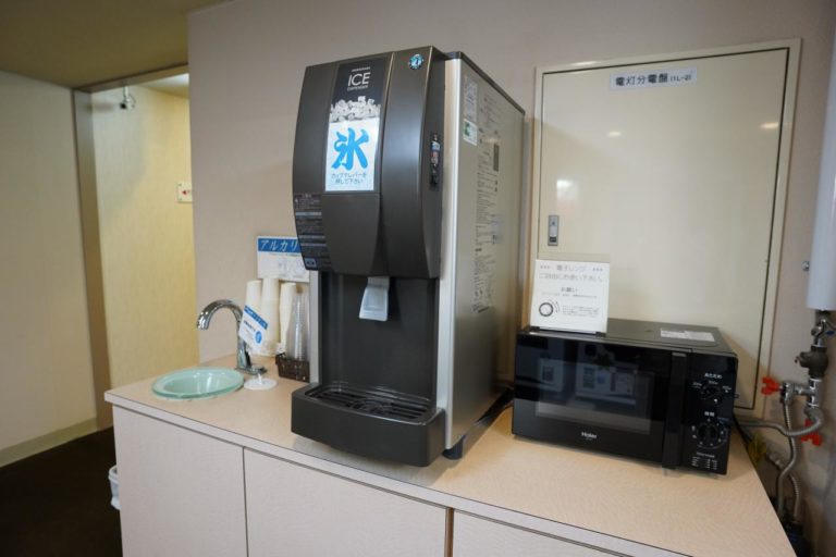 製氷機やアルカリイオン水の他、電子レンジもあるので、お弁当などを温めることも可能。