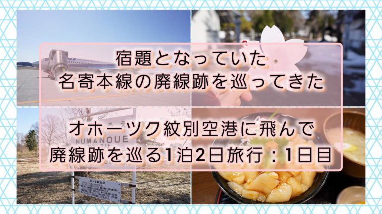 今回は「オホーツク紋別空港」に行くのが目的で、他の予定は当初考えていませんでした。でも廃線跡めぐりすればよさそうと思い立って、今回の行程を計画。
