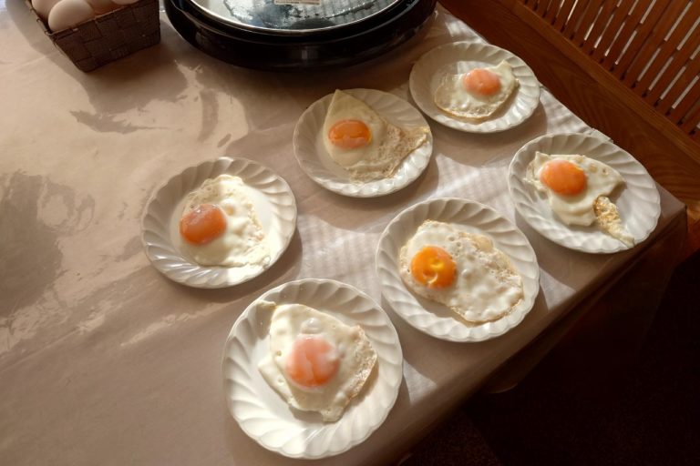 ズラッと並ぶ目玉焼き。さて、ここまでの卵料理をまとめてみましょう。