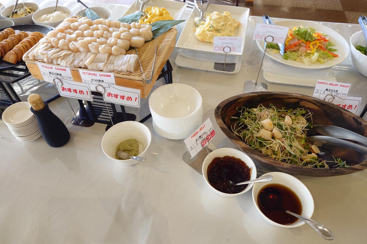 紋別セントラルホテルの朝食は、ホタテをメインとして北海道グルメがたっぷり楽しめるバイキング方式。いくら載せ放題みたいなのはないけど、北海道の朝食バイキングではかなり好きなホテルです。