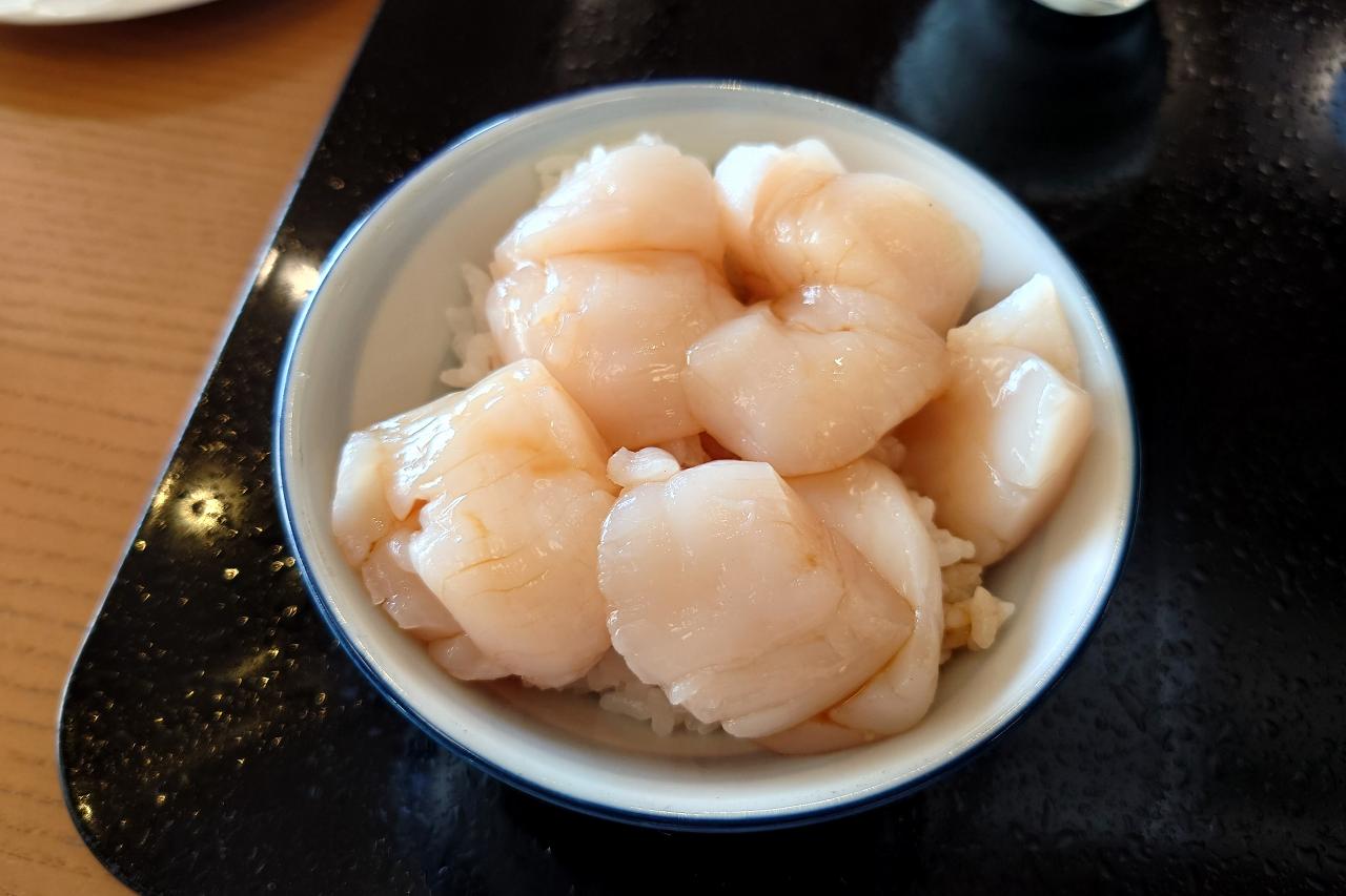 ホタテたっぷりの丼ぶり。ドーミーインとかでもホタテ食べ放題はあるけど、ここのサイズ感の方が食べ応えもあって「ホタテを食べてる!」と感じられて好き。しかし毎回、ここの朝食って慈善事業なのでは?儲かってるの?と心配になってしまう。ごちそうさまでした。