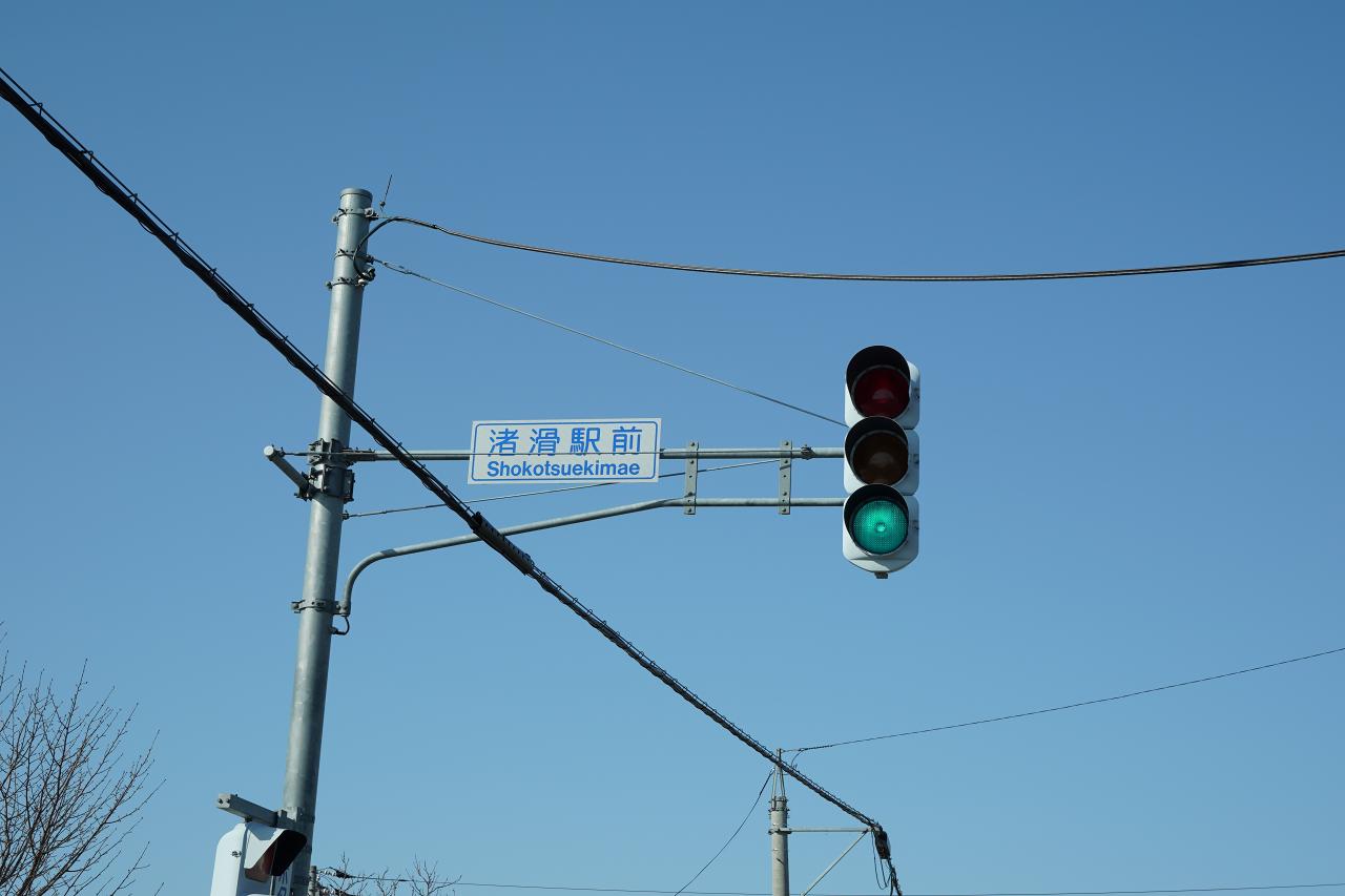 雄武方面へと向かう途中、渚滑駅跡で見つけた信号機。前回は気づかなかったのだけど、ここの信号機の名前は今でも「渚滑駅前」なんですね。