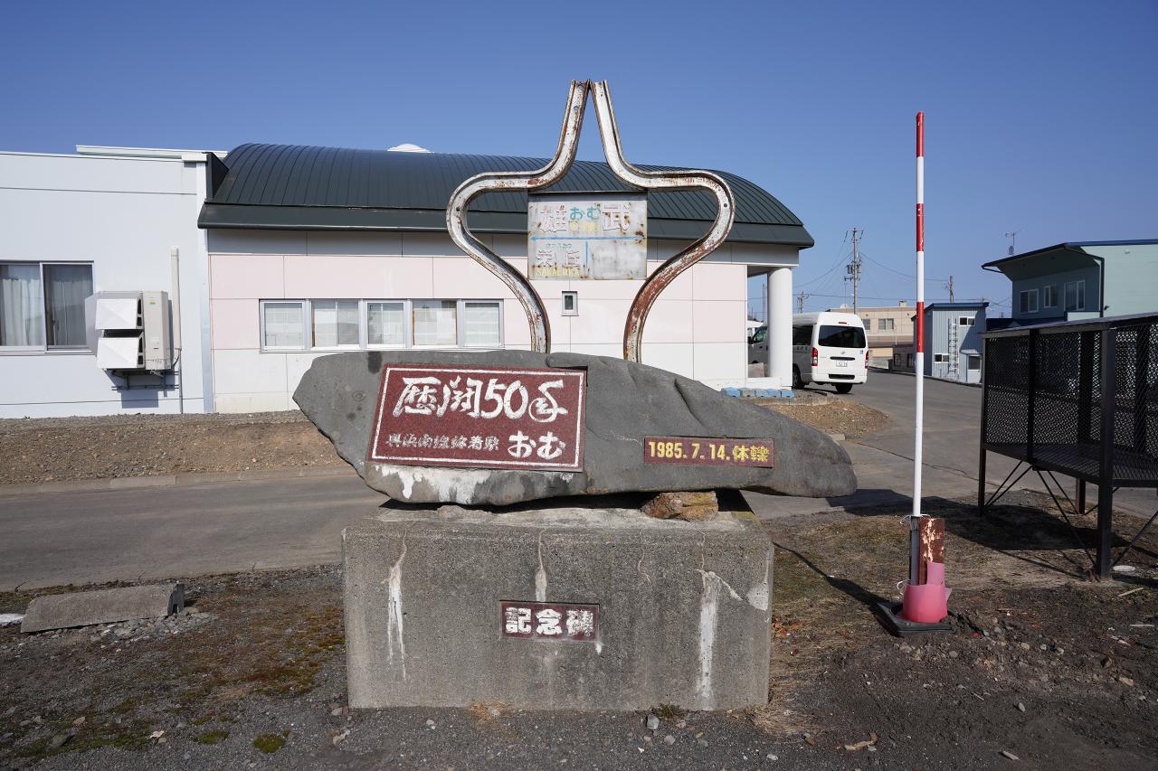 1985年7月14日、興部南線の最終運行日に設置された記念碑です。駐車場の隅にひっそりと残されています。