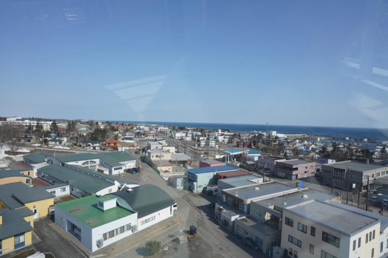 紋別セントラルホテルに泊まったのは3回目なのに、今回初めて知った展望デッキ。ロビー近くのエレベーターから9階に行くと外に出ることができ、そこから港を一望できます。今の時期だと朝が早いので、朝日を見るにはめちゃくちゃ早起きが必要だけど、10月とか11月なら6時位に日の出を眺められそう。