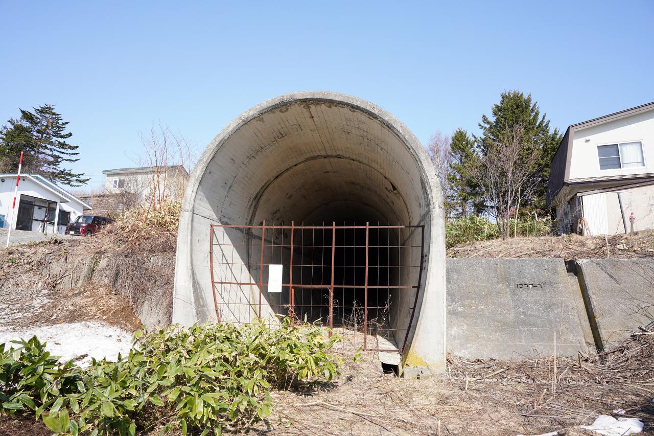 これが雄武トンネルの跡で、反対側は封鎖されています。当時の写真が無いので何とも言えませんが、今見るとなぜここにトンネルを掘ったのかとしか思えない。