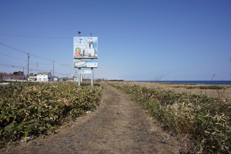 雄武駅の隣にあった「雄武共栄仮乗降場」跡。興部南線は国鉄時代に廃止されたので、仮停留所の駅昇格は行われませんでした。そのため「駅跡」ではなく「仮停留所跡」となっています。