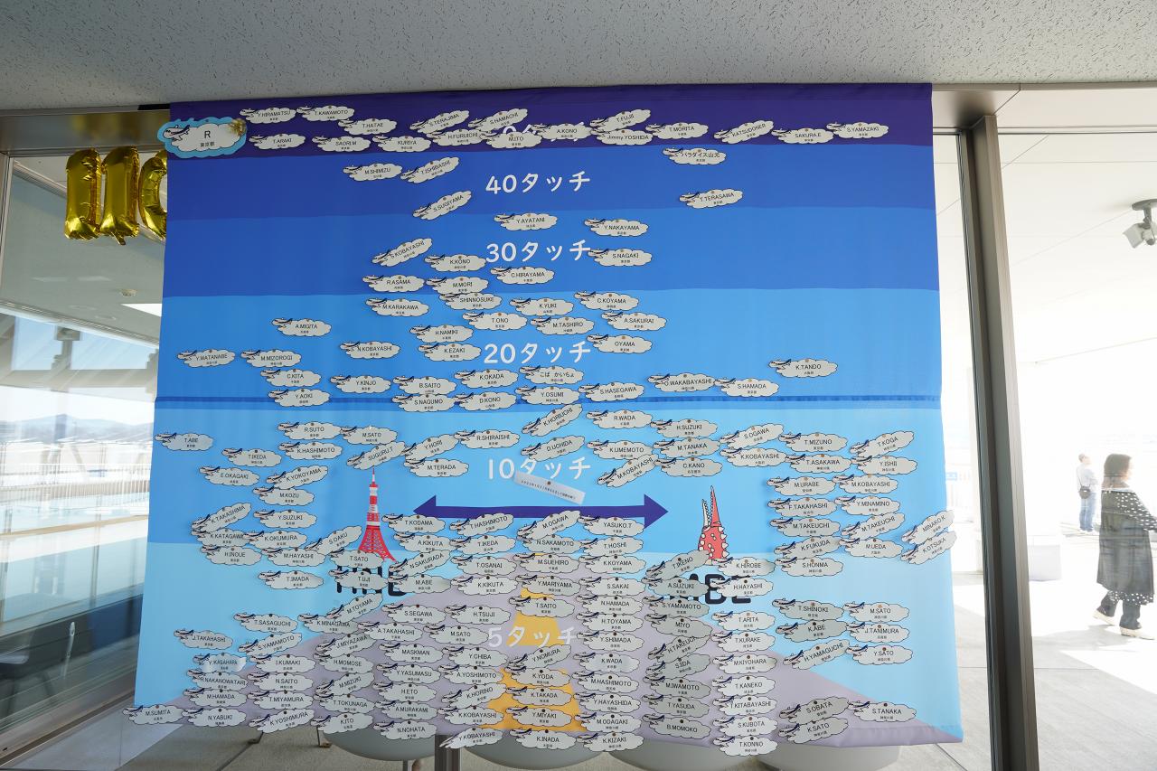 レンタカーの返却時刻ぴったりにオホーツク紋別空港に到着。少し時間もあるので空港内を散策してみると、紋別タッチの回数を記録したボードが置かれていました。めちゃくちゃ回数が多い人もいて驚き。