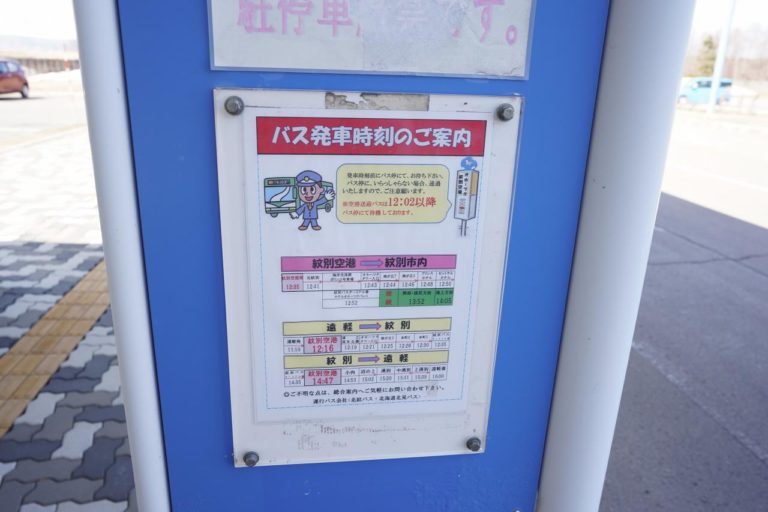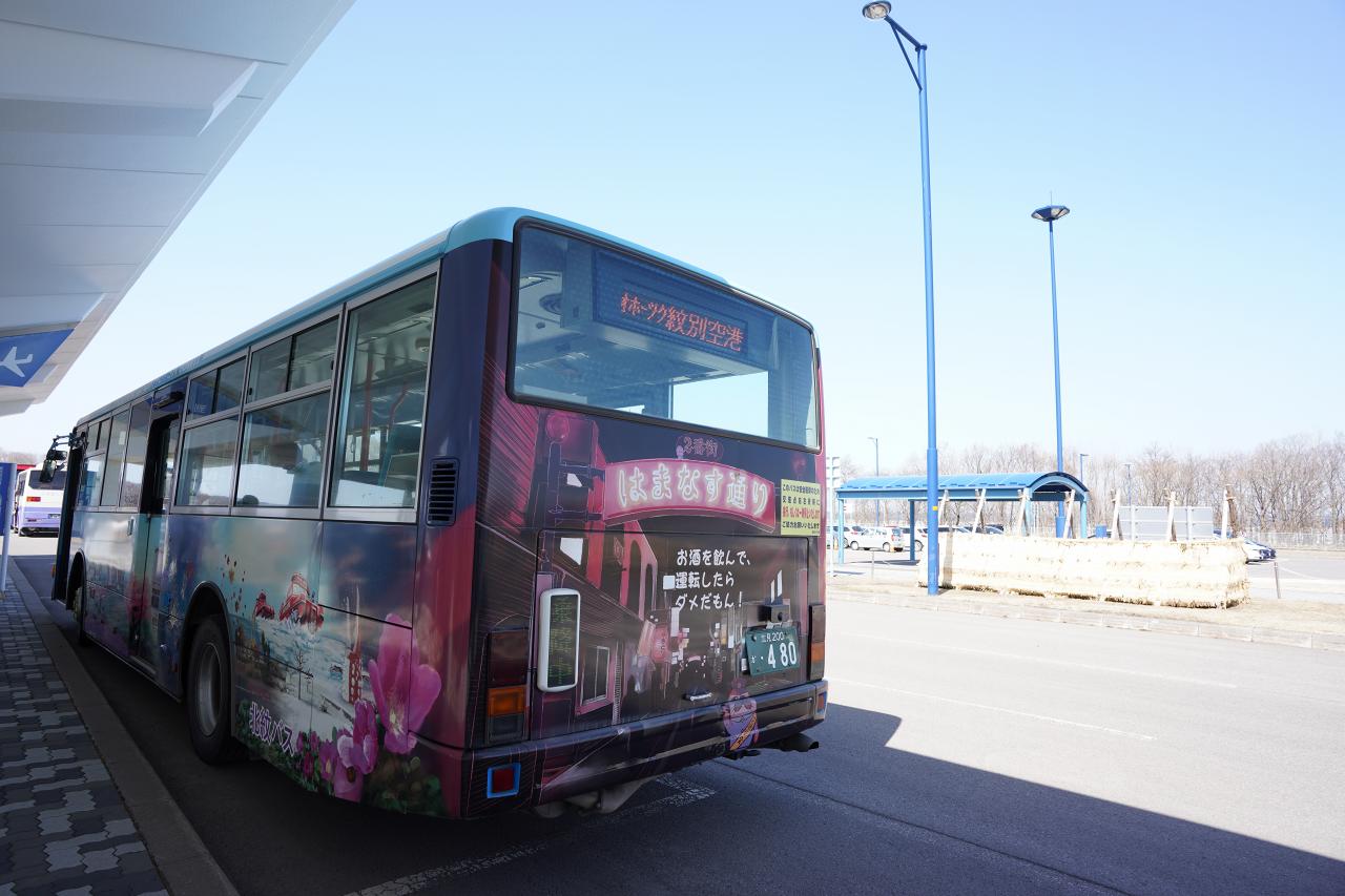 外に停まっていたバス。このバスは空港利用者向けの市内行き無料送迎バスです。これ、紋別市内だけじゃなくて遠軽まで無料送迎してるのは強い。