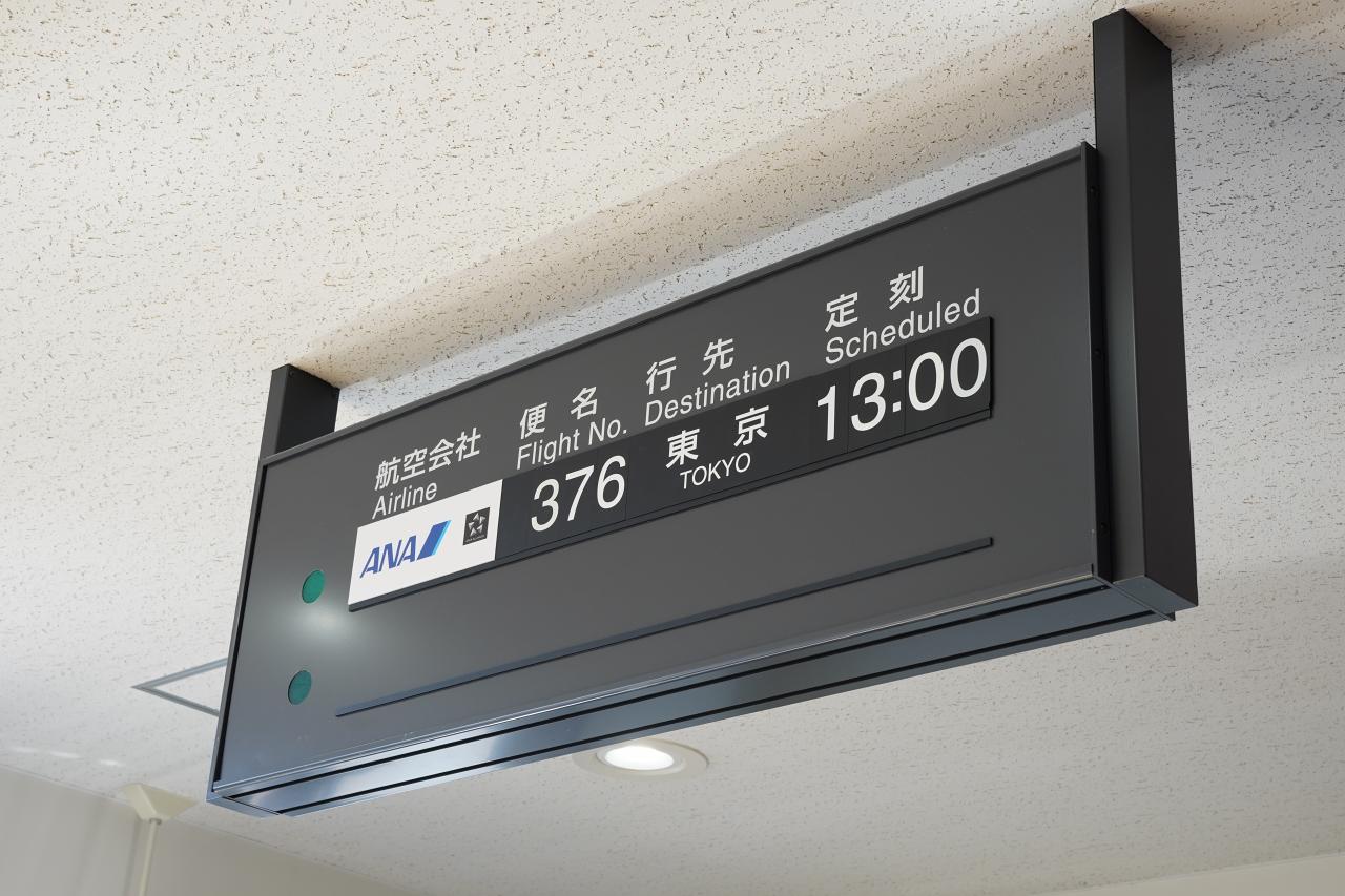 ホタテカレーも食べて、保安検査を受けて搭乗を待ちます。この空港の出発便は「NH376便のみ」なので、2行の案内板も持て余すほど。新千歳便も有っても良いのではと感じるけど、あんまり需要もないのかなぁ。