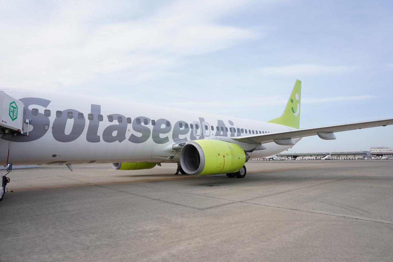 バスで移動して搭乗。搭乗する間際に「あれ!?ANAじゃない!?」という慌てた声が聞こえてきましたが、きっとコードシェアでソラシドエアを取ったことを気づいて無かっただけだと思うけど、知らなければわからないよなぁ。