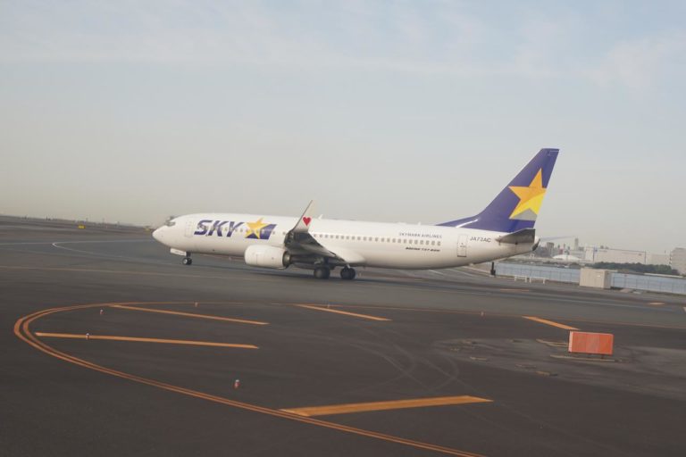 離陸までの移動中、スカイマークの飛行機を発見。キットカットが無くなった航空会社という印象しか浮かばない。