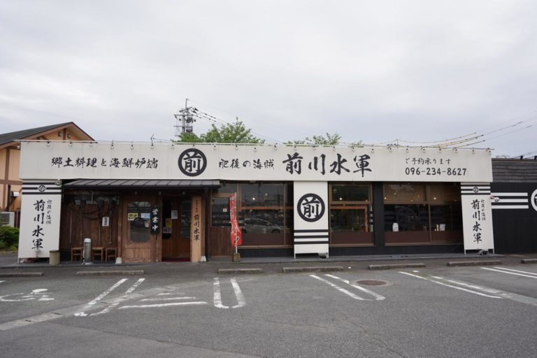 熊本空港から市街地に向かう途中で見つけたのが「前川水軍」というお店。ここは磯丸水産を運営するSFPホールディングスの子会社「ジョースマイル」が運営するお店で、株主優待券を使うことができます。以前から気になっていたので、ランチタイムに食べに来ました。