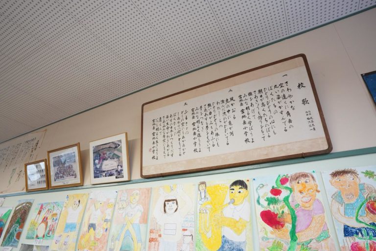 教室の壁には、当時の校歌や写真が展示されています。廃校となってそのまま放置されている学校も多い中、こうして雰囲気だけでも再現してくれているのは、卒業生にとっては嬉しいでしょうね。