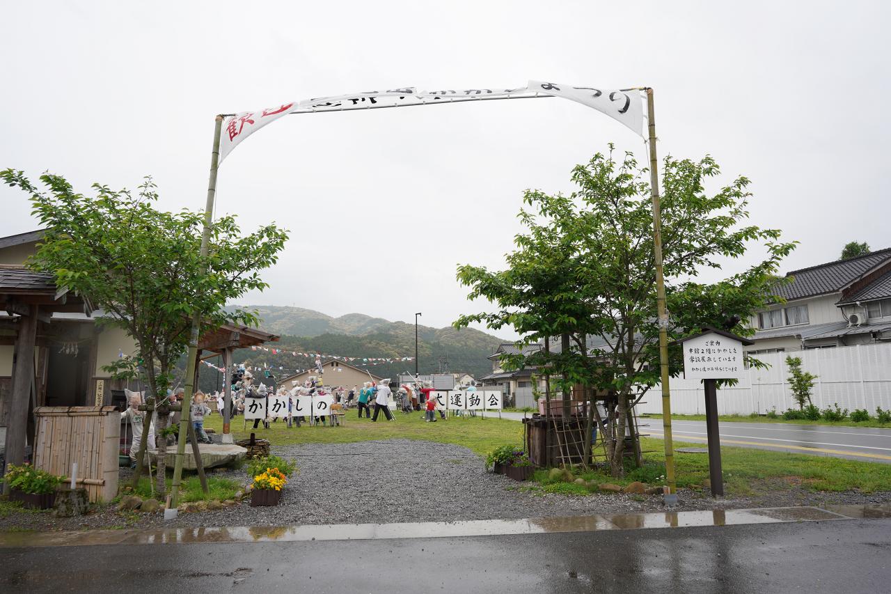 屋外ではかかし祭りの出し物として「かかしの大運動会」が行われています。めちゃくちゃ雨降ってますが……。