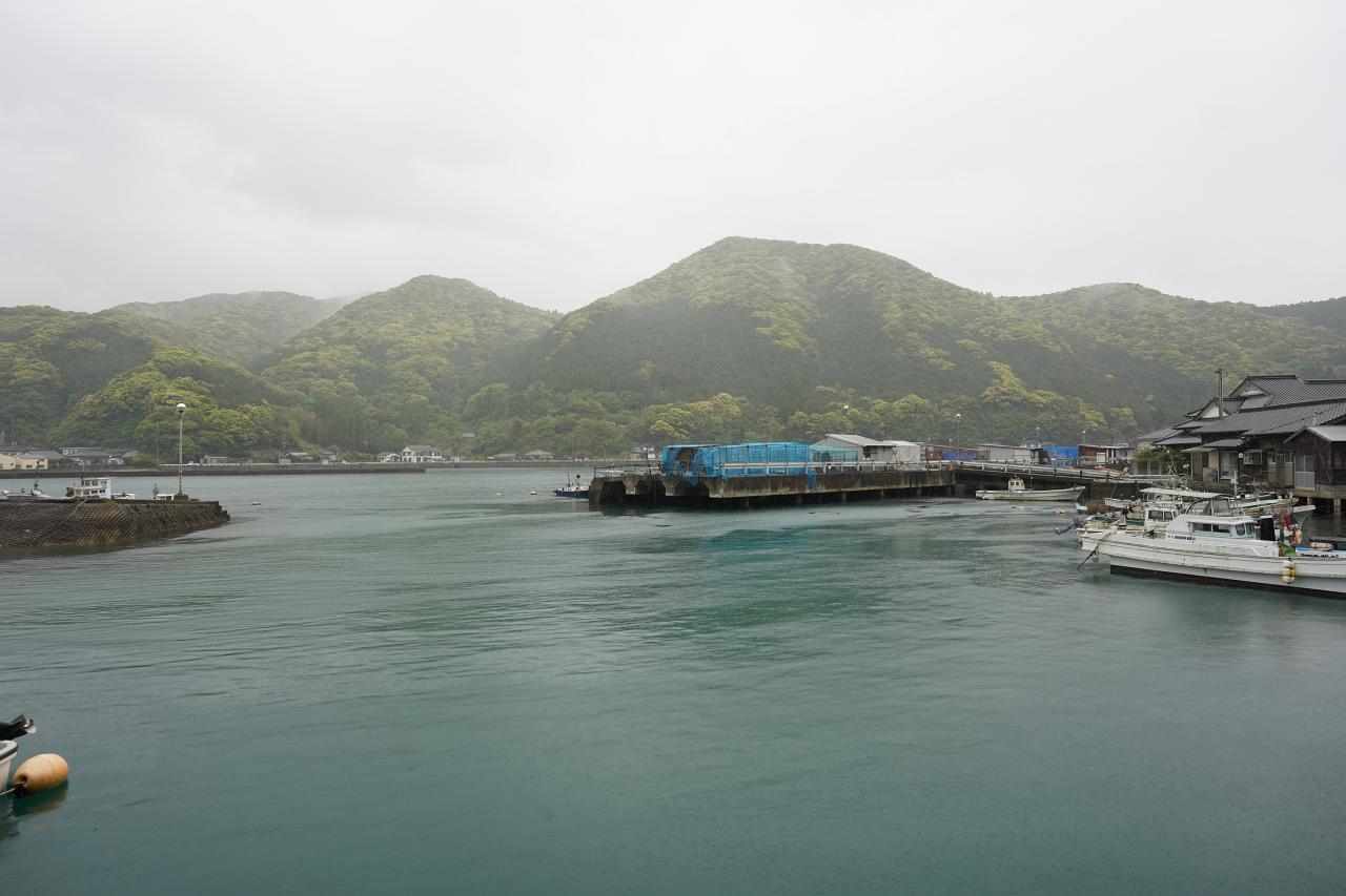 カケから海を眺めます。のどかな漁師町という雰囲気で、ゆったりした時間が流れています。天気が良ければなぁ……。