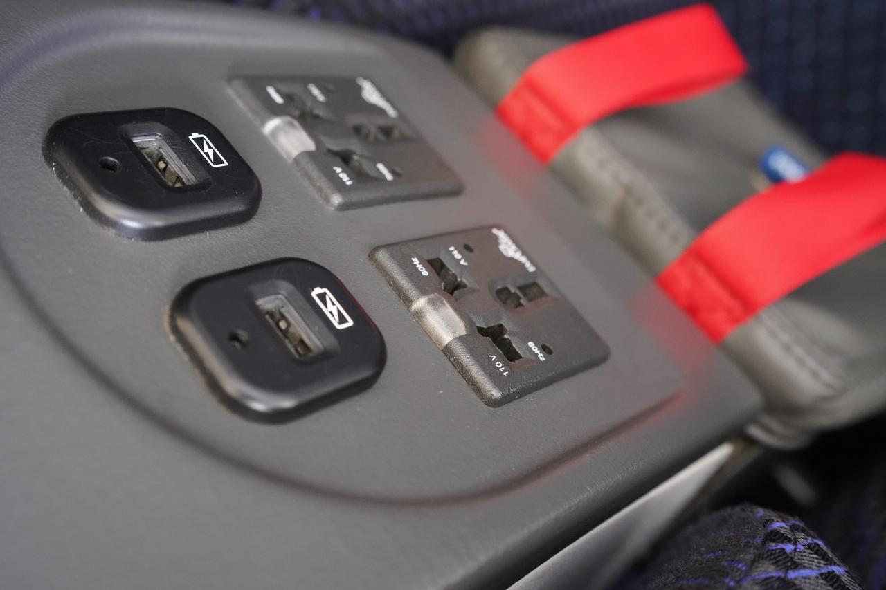 座席中央にはコンセントが用意されています。なお使用できるのは離着陸時以外なので注意。最初知らないで使えないよ〜〜って思っちゃった。
