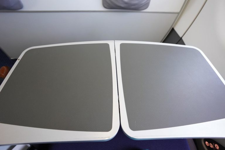 プレミアムクラスのテーブルは大きめで、パソコンなどを乗せても十分なサイズ感。機内ではWi-Fiも使用できるので、ラウンジに引き続き作業タイム。