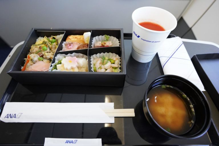 しばらくすると機内食が運ばれてきました。和食弁当なようです。
